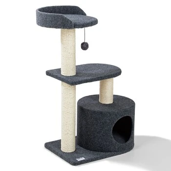Der AniOne Kratzbaum Ebony ist ein moderner Kratzbaum, der sich ideal in die Wohnung integrieren lässt. Neben zahlreichen Kratzmöglichkeiten an Polyesterfilz und Sisal bietet der Kratzbaum Ihrer Katze eine kuschelige Höhle als Rückzugsmöglichkeit, sowie zwei Aussichtsplätze zum Ausruhen und Schlafen. Der Plüschball am Elastikseil regt Ihre Katze zusätzlich zum Spielen an.