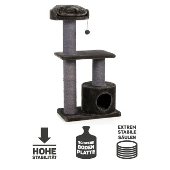 Diese Kratzbaum-Serie ist durch die vielen unterschiedlichen und abwechslungsreichen Liege- und Kratzmöglichkeiten ideal für einen Mehrkatzenhaushalt geeignet! Die schwere Bodenplatte und die massiven Sisalstämme verleihen dem Kratzbaum eine extrem hohe Standfestigkeit. Hierdurch eignet er sich im Besonderen auch für besonders große und schwere Katzenrassen.