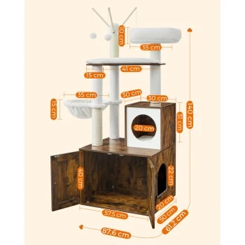2-in-1-Katzenmöbel: Mit der Kombination aus Kratzbaum und Katzentoilette bekommt Ihre Katze einen Ort zum Beobachten, Spielen, Entspannen und um ihre Notdurft zu verrichten, es nimmt aber nur 57,5 x 50 cm Fläche – ein wahrer Platzsparer