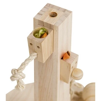 Das Denk- und Lernspielzeug Feedtree von Kerbl verbannt die Langeweile Ihrer pelzigen Freunde. Der Feedtree besteht aus Naturholz und dient somit nicht nur als reines Spielzeug, sondern kann auch beknabbert werden und sorgt für gesunde Zähne. Ihr Liebling mag oder darf nur bestimmte Snacks haben? – Kein Problem! Der Feedtree kann ganz individuell mit den Lieblingssnacks Ihres pelzigen Freundes bestückt werden – dafür einfach in die Fächer kleine Futterstückchen legen und der Spaß beginnt! Wie Intelligent ist Ihr Liebling? Sie werden überrascht sein. Dies können Sie dank der unterschiedlichen Schwierigkeitsstufen (Ziehen, Schieben, Rollen und Hochheben) herausfinden.