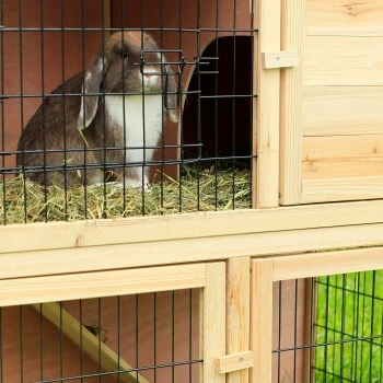 - SCHUTZ & BESCHÄFTIGUNG IN EINEM. Dieser Kaninchenstall mit 2 Etagen dient sowohl als Schutzhütte als auch als Spielplatz für Ihre Kleintiere im Außenbereich.