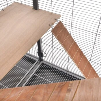 - Vier Seitentürchen:für rundum Zugriff auf die Voliere