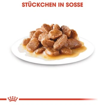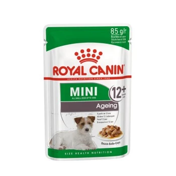 ROYAL CANIN Mini Ageing 12+ in Soße ist für Hunde ab dem 12. Lebensjahr mit einem Gewicht von bis zu 10 kg geeignet und wurde speziell auf die Bedürfnisse kleiner Hunde abgestimmt.