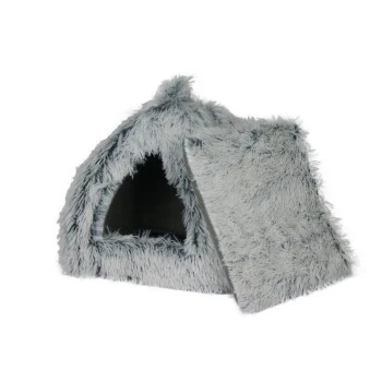 Der weiche Langflorplüsch dieser Höhle ist nicht nur ein optisches Highlight sondern lädt regelrecht zum Kuscheln ein. Im Inneren befindet sich ein weiches Kissen (ca. 32×32 cm), das auf einer Seite ebenfalls mit Plüsch und auf einer Seite mit Stoff bezogen ist. Das Kissen kann entnommen werden und so lässt sich  die Höhle einfach zusammen klappen und kann platzsparend auch mal mit auf die Reise gehen. Die Unterseite der Höhle ist mit Antirutschstoff versehen. Kissen sowie Höhle lassen sich einfach per Handwäsche reinigen.