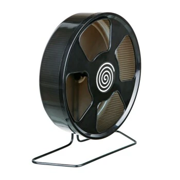 Die spezielle Ständerform sowie die geschlossene Rückwand verhindern das Einklemmen des Tieres und machen das Laufrad besonders sicher.
