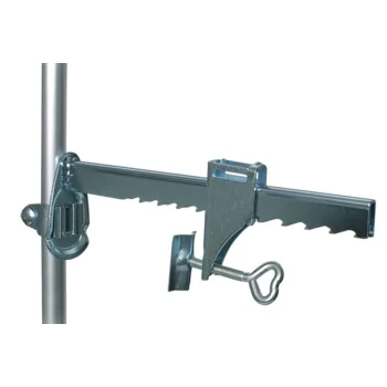 Die Mauerklemme ist verzinkt und verstellbar bis 19,5 cm. Die Teleskopstange aus Aluminium ist oben angewinkelt und verhindert so das Hinüberklettern Ihrer Katze. Sie ist verstellbar von 1 bis 2 m.